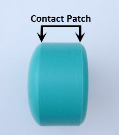 A Contact Patch is the area of the wheel that actually makes contact with the ground. Freestyle wheels traditionally have a wider contact patch than street wheels because wider offset wheels are necessary for protecting the axle and providing stability for Rail Tricks. A wheel with a wider Contact Patch may feel a little sluggish, but also very stable. A narrower Contact Patch will be more responsive and quicker turning than a wider one, so former street skaters may feel more comfortable with these.