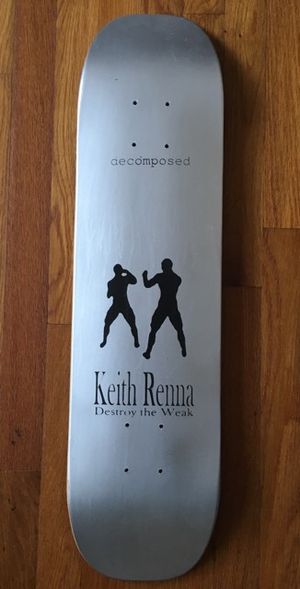 Graphics feature the silhouettes of two sparring MMA fighters facing off with fists raised. "Keith Renna" is printed below with "Destroy the Week" printed in smaller font just below that. "decomposed" is printed in small lowercase font just below the front Mounting Holes.