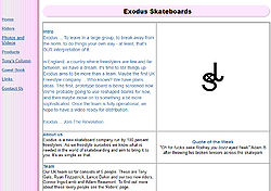 Exodus was a British freestyle team and 100% freestyler-owned skateboard company located in the UK, founded by Tony Gale & Ryan Fitzpatrick in the 2003. Sadly this venture was short-lived and lasting only 18 months, without ever producing a board or finishing their full "Genesis" freestyle video. You can, however, see the team in all their glory in the "Genesis" trailer video below.