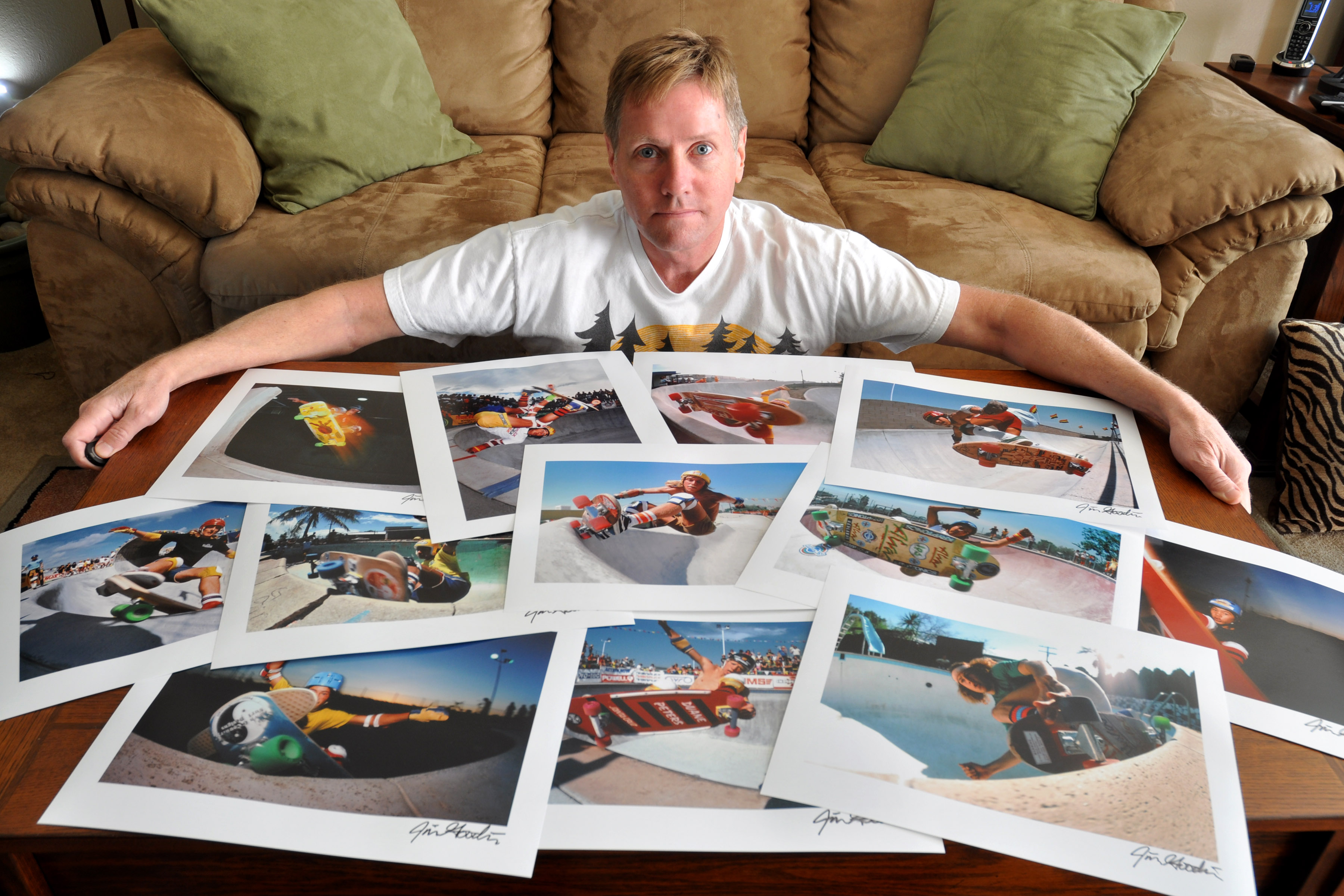 Jim Goodrich with skate photo prints, December 2012. Photo provided by Jim Goodrich.