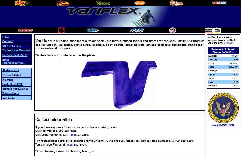 variflex.com Homepage, circa 2004