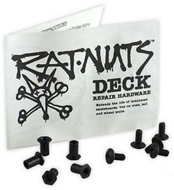 Rat Nuts are Powell Peralta branded Sex Bolts which were marketed as deck repair hardware back in the 1980's. Each kit came with 10 Rat Nuts, 10 3/8" truss head screws and an instruction manual.