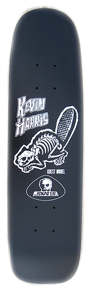 | Graphics | Features a see-through beaver with skeleton revealed center deck. Two-tone white on black background. "KEVIN HARRIS" is printed to upper-left of beaver with "GUEST MODEL" printed below. The Skull Skates logo appears just above the rear mounting holes. |