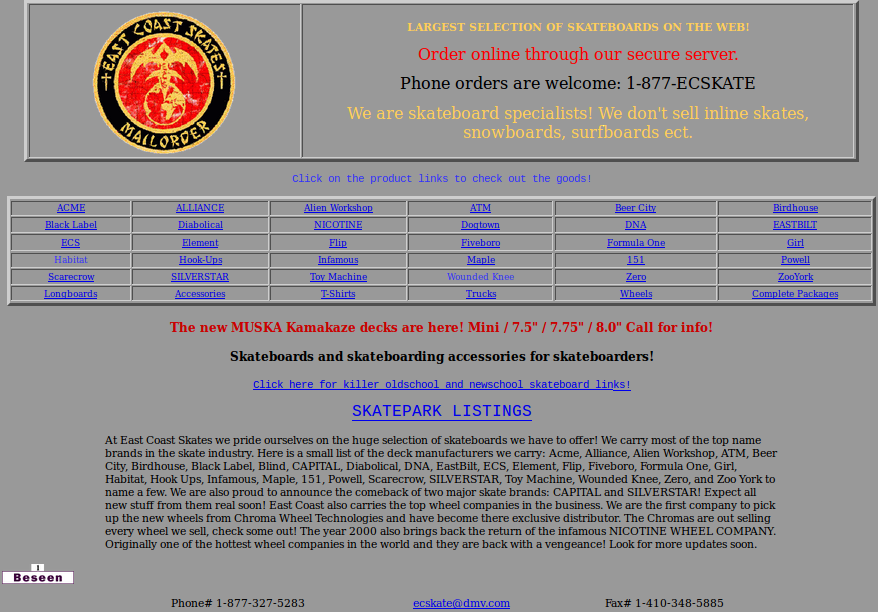 - (download) Eastcoastskates.com Home Page Screenshot 2000.png . . 878 × 612 . . 138 KB . . Admin . . 05:06, 25 February 2016